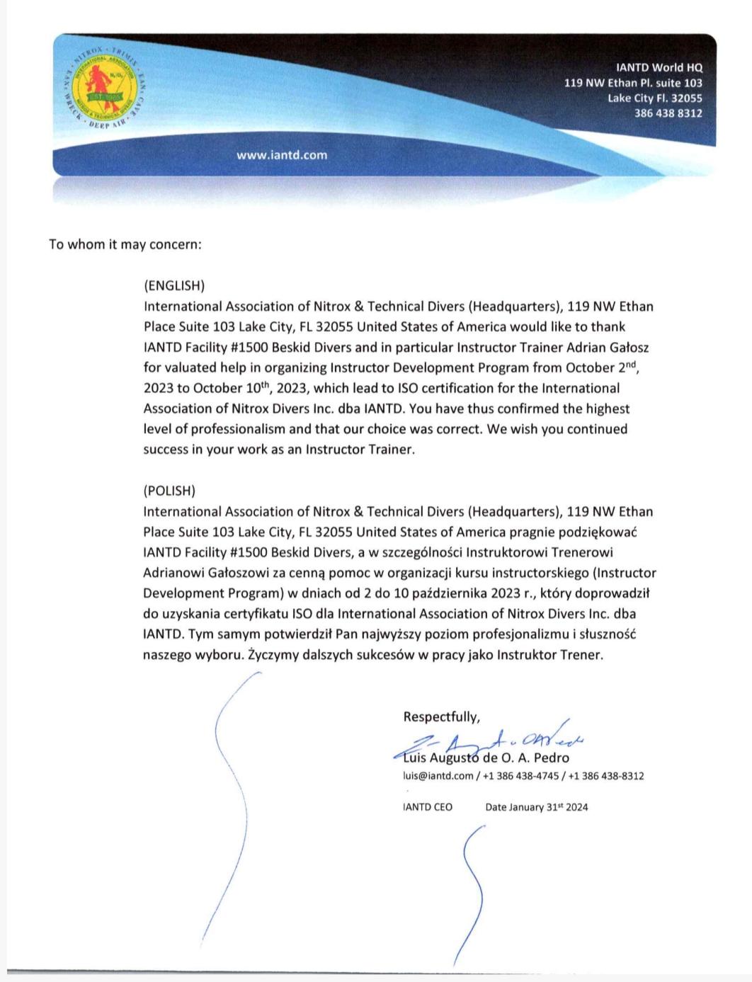 IANTD Pro Educator & Diamond Facility nr 1500 , PADI 5 Star Dive Center nr 35529