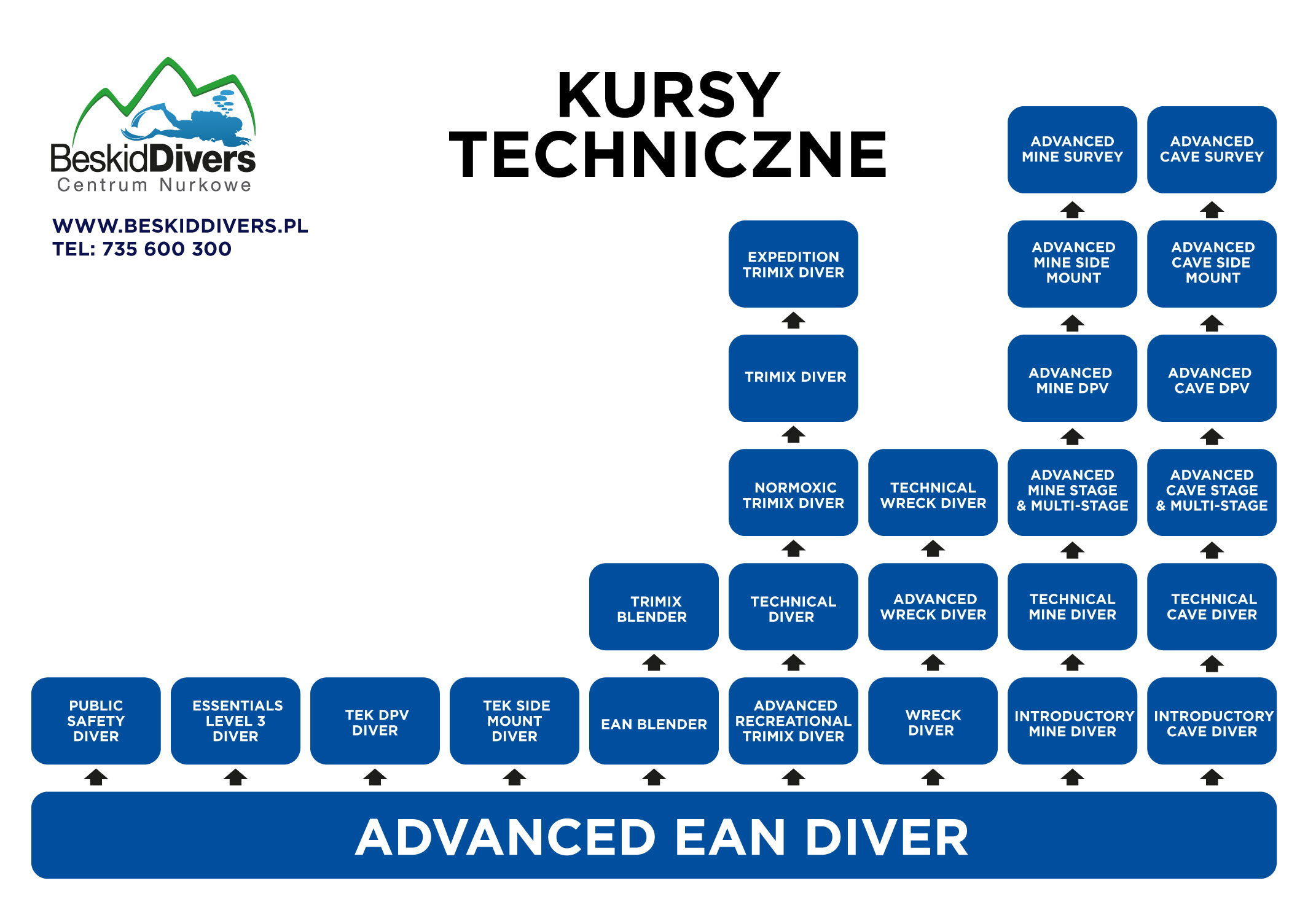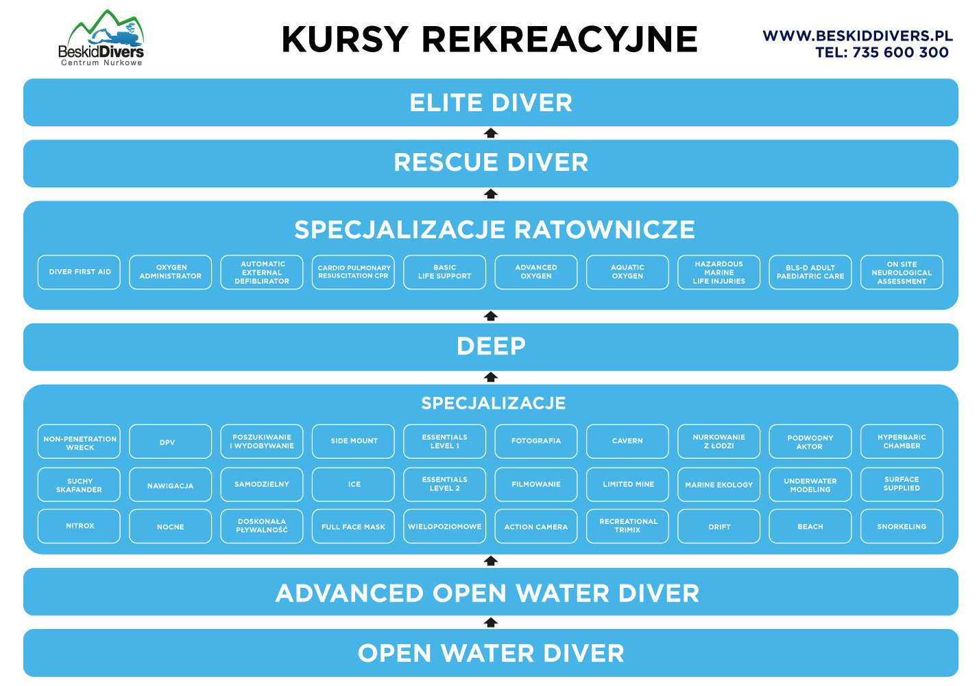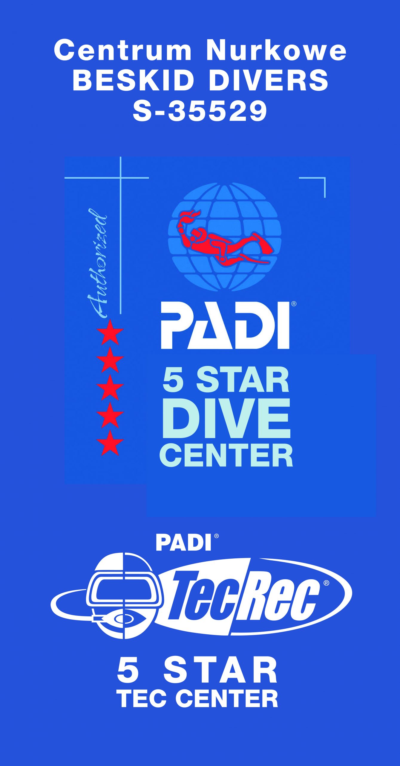 Beskid Divers to jedyne centrum IANTD NA POŁUDNIU POLSKI, autoryzowane 5-cio gwiazdkowe centrum PADI oraz PADI TecRec, biznes partner DAN, Emergency First Response Center.