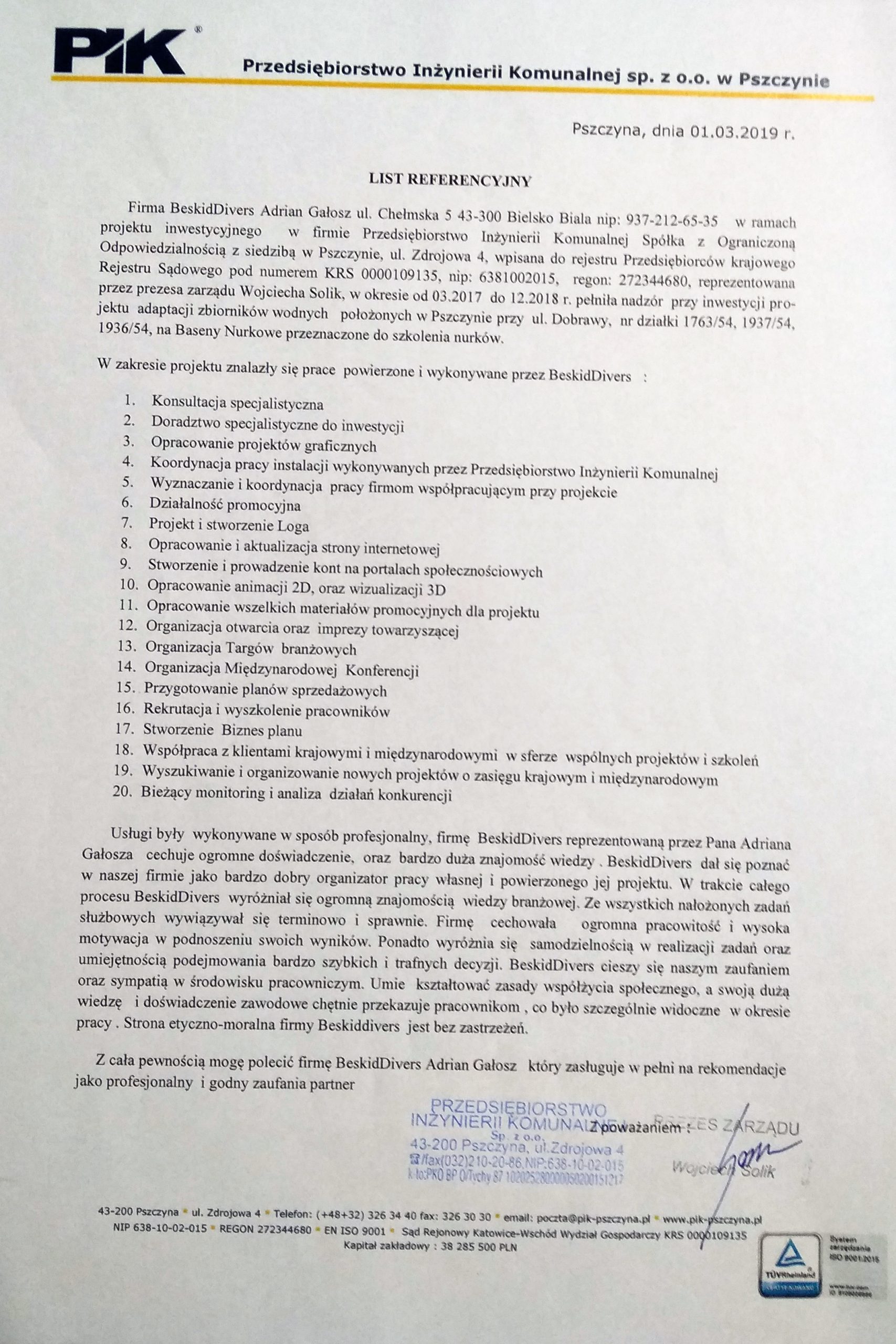 Referencje centrum nurkowego BeskidDivers Bielsko – Biała