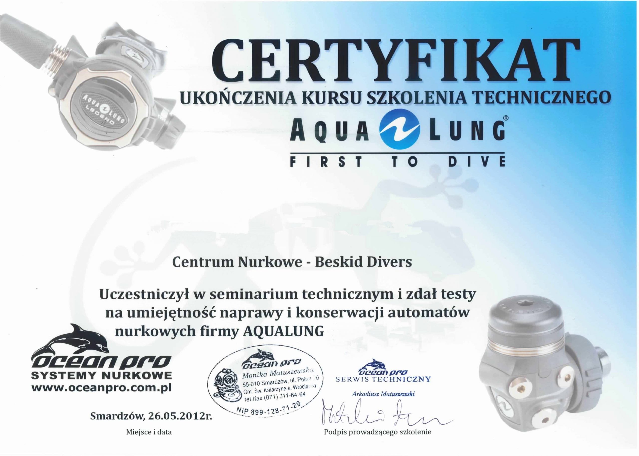 - Autoryzowany serwis sprzętu do nurkowania