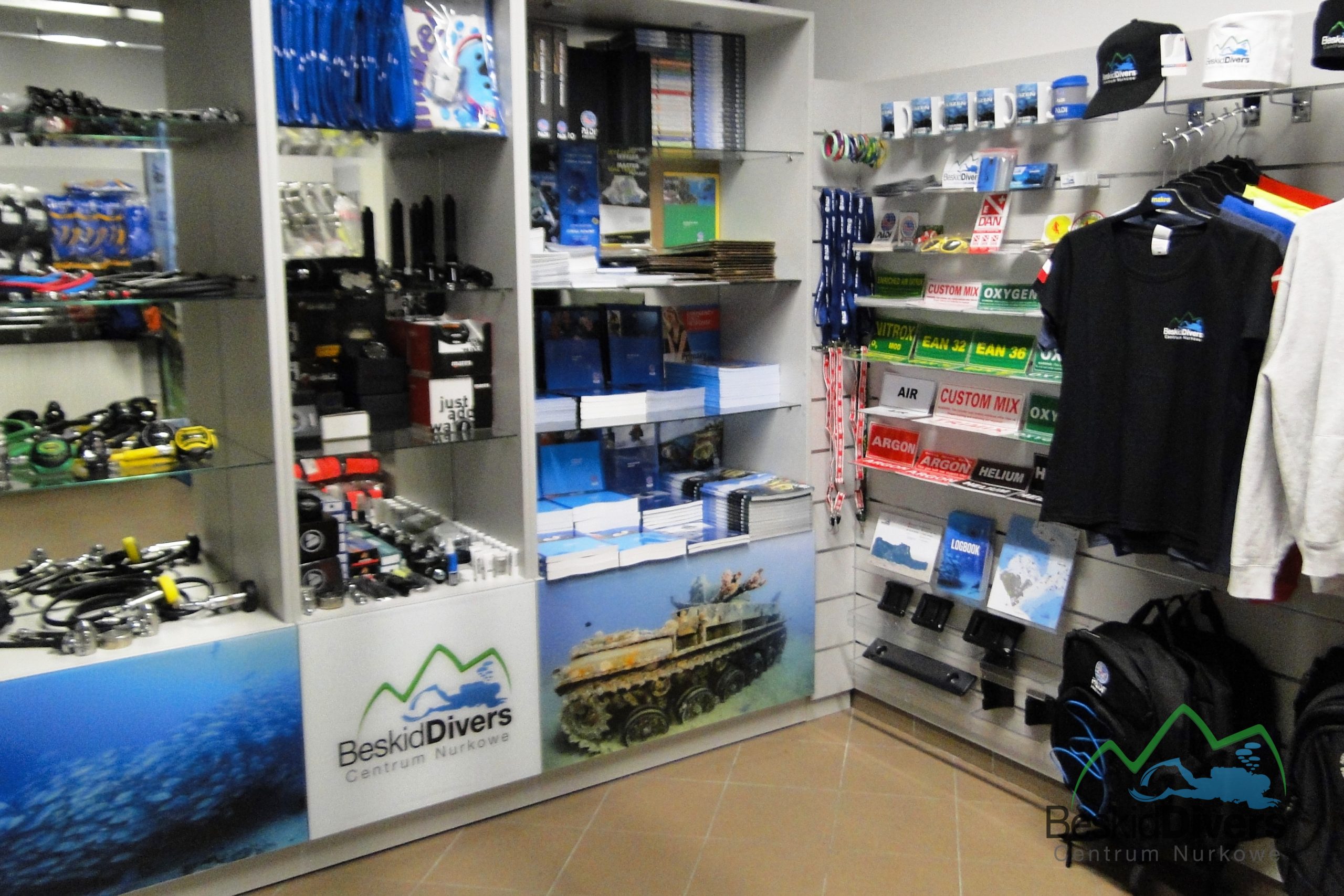 Kompletnie wyposażony stacjonarny Sklep Nurkowy BeskidDivers w Bielsku Białej oferuje: